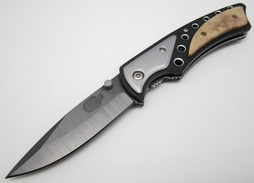 - Metal handle with wooden scales