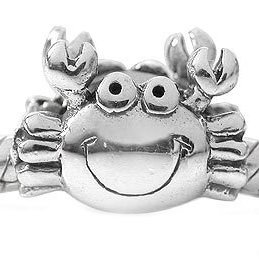 Authentic Biagi Happy, This authentic Biagi three-dimensional Happy Smiling Crab Bead is cast of solid .925 sterling silver and will make a nice addition to a beach themed European Charm Bracelet or bead collection. The large hole allows this bead to slide easily onto your bracelet. This bead is unthreaded, stamped .925 and is compatible with major brand sterling silver 3mm Cable European Charm Bracelets such as Ohm, SilveRado and Zable. Total weight for this charm is 2.5 grams. Measures 9 mm x 10 mm x 8 mm.