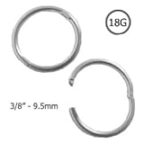 925 Sterling Silver Nose Ring Hinged Hoop 3/8" 9.5mm 18G Details & Features